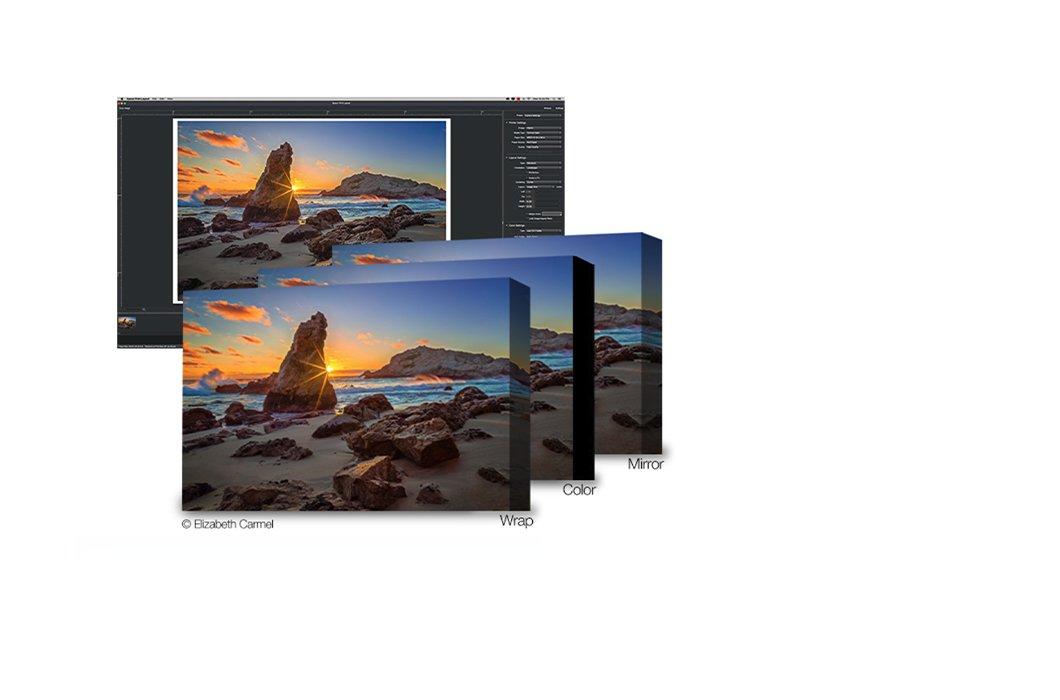 Välj bara gallery wrap-tryck på canvas och välj sedan från en mängd olika alternativ, inklusive fem olika kanteffekter. Fotona kan sedan skrivas ut på pappersrulle.